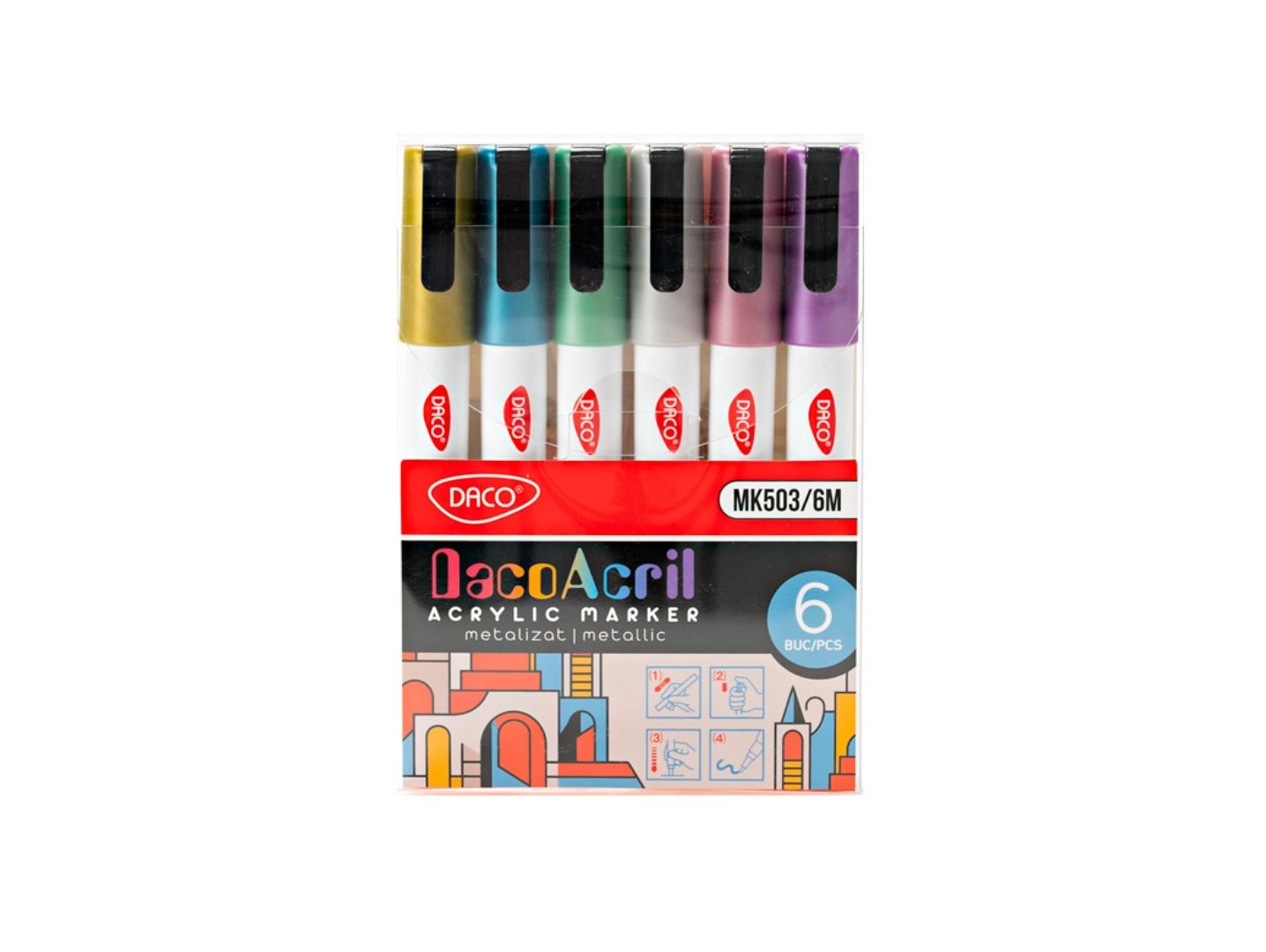 - Set de 6 culori metalizate – efect stralucitor, ideal pentru accente decorative